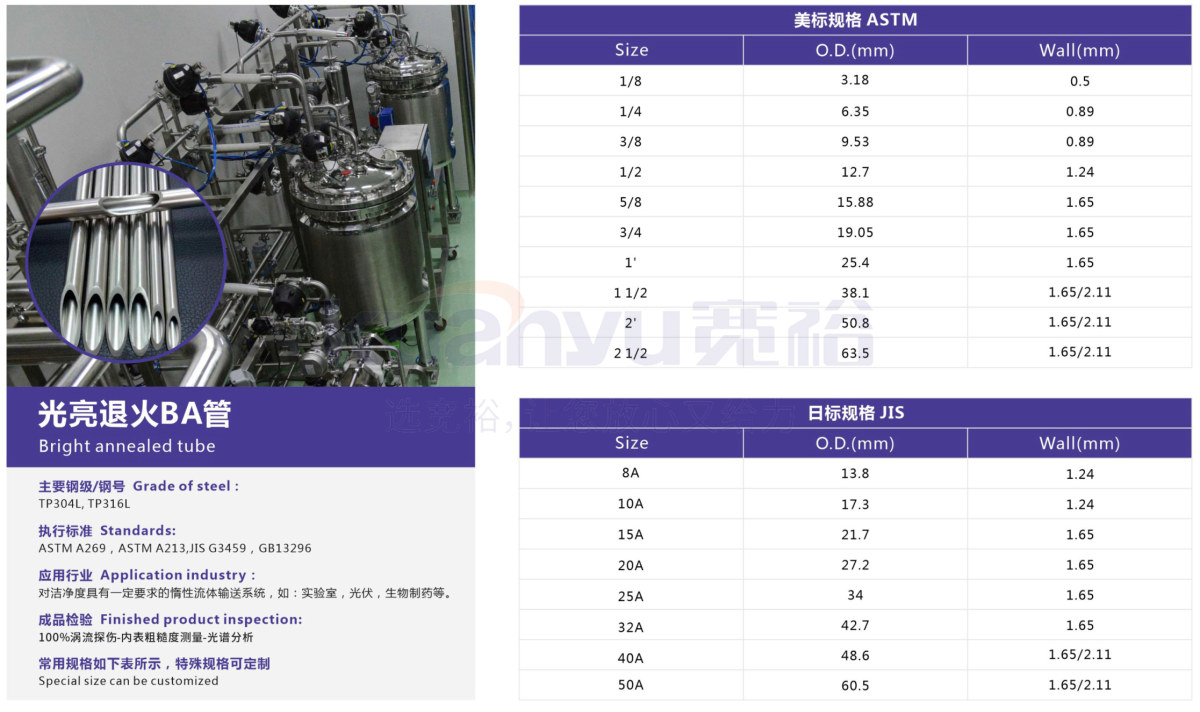 不銹鋼衛(wèi)生級管主要應用于食品,飲料,酒類,生物工程等生產(chǎn)設(shè)備及流水線。主要是針對不銹鋼管的表面光潔度,禁油度以及鈍化層進行要求。