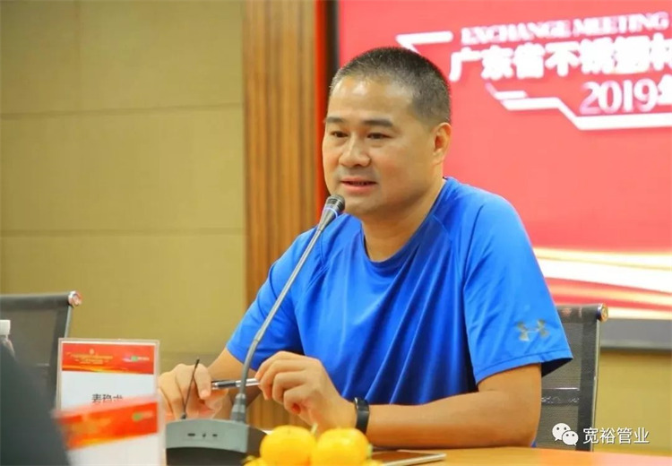 水管分會執行會長麥穩求先生在致辭中對廣東不銹鋼水管同仁的到來表示熱烈歡迎。麥總對不銹鋼水管的前景和當前的市場概況以及廣東不銹鋼水管企業的定位、發展方向毫無保留地分享了自己的看法和觀點。
