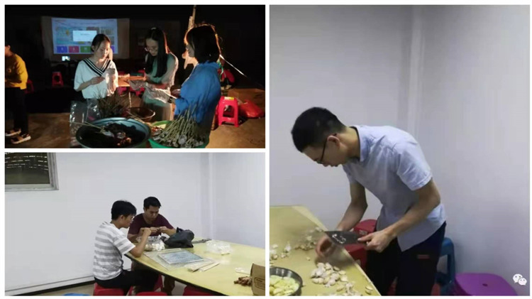 為了我們的家人們能早早吃上燒烤,我們下午三點便開始著手準備,出門購買食材,然后做調味料,穿串子......準備完畢后,立馬開始了我們的燒烤活動。大家一會兒加炭,一會兒給食物翻身,一會兒刷油,一會兒加調料……忙得不亦樂乎。