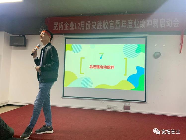 總經理黃總壓軸出場為全體小伙伴帶來精彩而鼓舞人心的啟動會致辭!黃總說到:本次的啟動會能在短短兩天的時間內策劃完成,絕對是我們的又一次重大突破!成長的過程就是不斷突破又不斷取得進步的過程!已經取得的進步,足以令人振奮,但與“未來”相比,今天的一切微不足道!只有不斷以更高的要求和目標要求自己,我們才能成為更強的寬裕人!才能成為真正的“武林高手” !善于抓住每一場戰役,不斷鍛造我們的功力+武器,此為【善戰】;樂此不疲地投身每一場戰役,并從中汲取戰斗的樂趣,此為【戀戰】;定下目標,狠抓過程并勢必達成結果,此為【謀戰】!愿我們每一個寬裕人都能在一場又一場的戰爭中成為真的勇士!