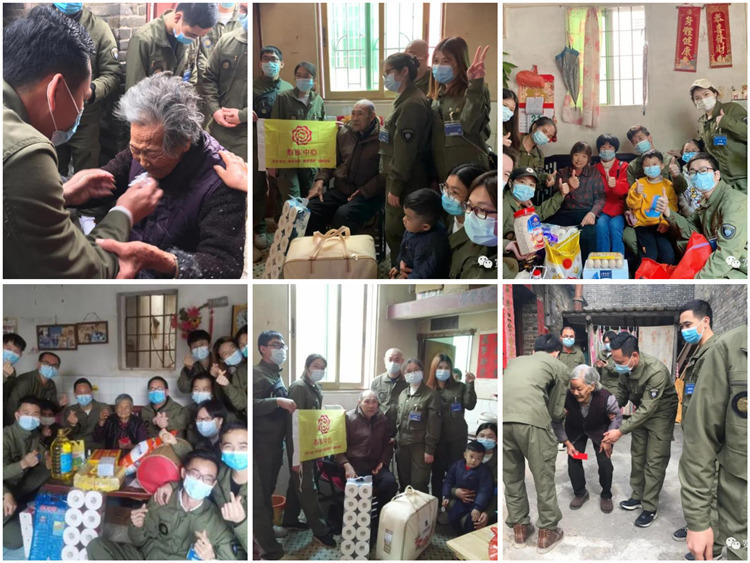 ▲本次老鷹的學員一共60名隊員參與探訪活動,分為8組,分別探訪了丹灶鎮(zhèn)的銀河、西城、仙崗、石聯(lián)、橫江、新農、南沙,共計7個村居32戶(困難、孤寡、獨居、高齡)長者。隊員們?yōu)殚L者們精心選購了:大米、山藥面、食用油、牛奶、麥片、紙球等日常食用品和一次性醫(yī)用口罩、消毒液等物資。