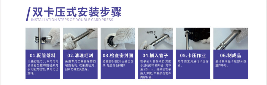 目前在連接方式的使用上,卡壓連接非常多,再者是環(huán)壓式,市面上這兩種的安裝方式成熟,大家可以根據(jù)自己的用管需求進行選擇。