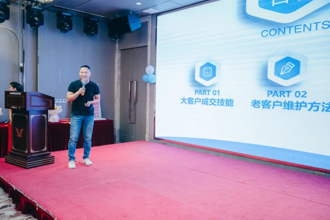 來自飛虎隊的高級銷售工程師“武一”,是我們本次復購戰誕生的第一個大單王,也是百萬戰神。在現場分享了老客戶的成交方法及維護方法,從產品專業力、客戶分析能力、客戶跟進方法等方面,分享了一些自己的小技巧。并深情介紹了自己在寬裕10年的成長歷程與收獲, 寬裕十年,追風少年成才俊,風雨兼程見肝膽。