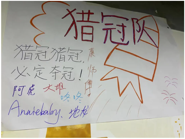 為了讓學習更加好玩有趣,讓伙伴們在不知不覺中就學以致用,策劃組特別設計了多個團隊游戲及互動。其中建團隊就是第一個“游戲”。通過遴選隊長的方式伙伴們快速確立了5個戰隊,它們分別是:冠軍隊、智聯隊、鋼鐵隊、王者隊、獵冠隊!一群可愛的00后,95后,用畫報盡情揮灑著對冠軍的無限向往!大家的關系一下子就拉近了!